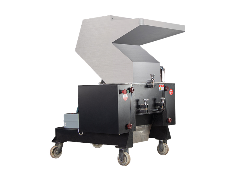 物料从进料口投入,在破碎箱内由旋转刀片与固定刀片进行破碎加工。符合规格的经过筛网到出料口,超规格的仍留下破碎。