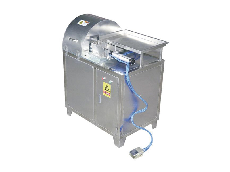 物料放入相应的进料模具,转盘旋转切刀将物料切成柳叶片、瓜子片、指甲片等片状。