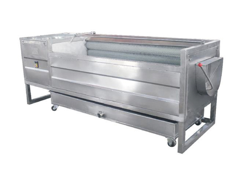 毛刷清洗机设有自动喷淋管系统,物料通过毛刷与毛刷,毛刷与物料之间的摩擦,达到清洗效果,杂物,泥土,毛发等会从辊轮之间排出。