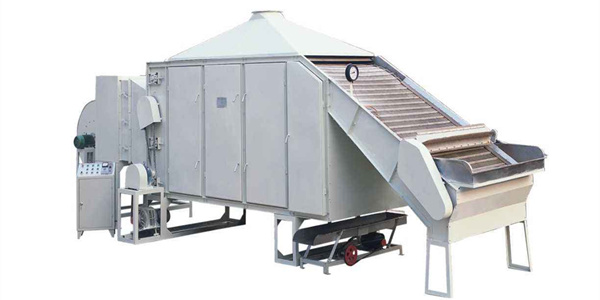 产生的干净热空气经送风器分配给烘箱内的多层翻板,物料由输送装置送入烘箱,自上而下连续翻滚,经热空气对物料的热传导和辐射使之干燥。